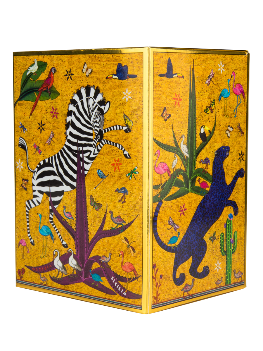 This hand-decorated ceramic jug by Ortigia Sicilia is a refined expression of Sicilian artistry. Its vivid yellow surface is adorned with intricate jungle-inspired motifs, brought to life with exquisite gold serigraphy that adds elegance and luminosity. Both decorative and practical, it is ideal for serving or as a striking centerpiece.