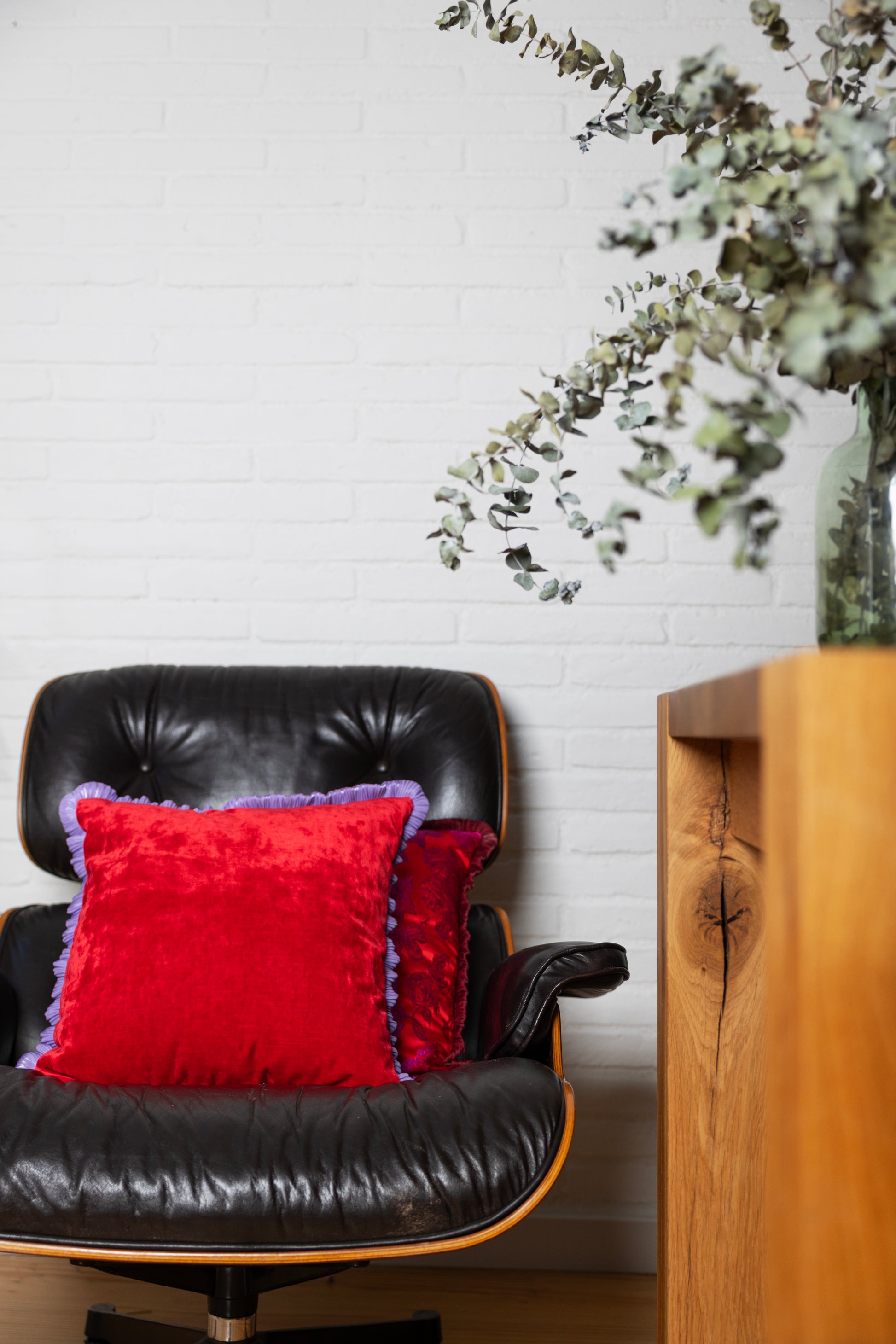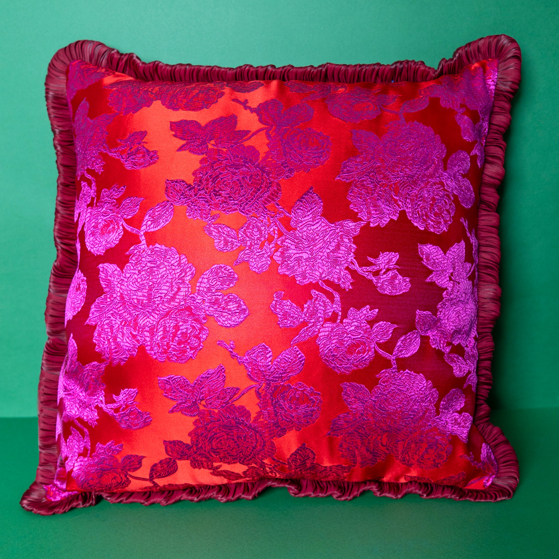 Crafted from cotton velvet and adorned with a romantic fringe on all sides, the SatinLove cushion in a bright red hue comes with an unexpected twist: a stunning floral satin side. Try arranging alongside other cushions from the collection to bring character and style into your home.