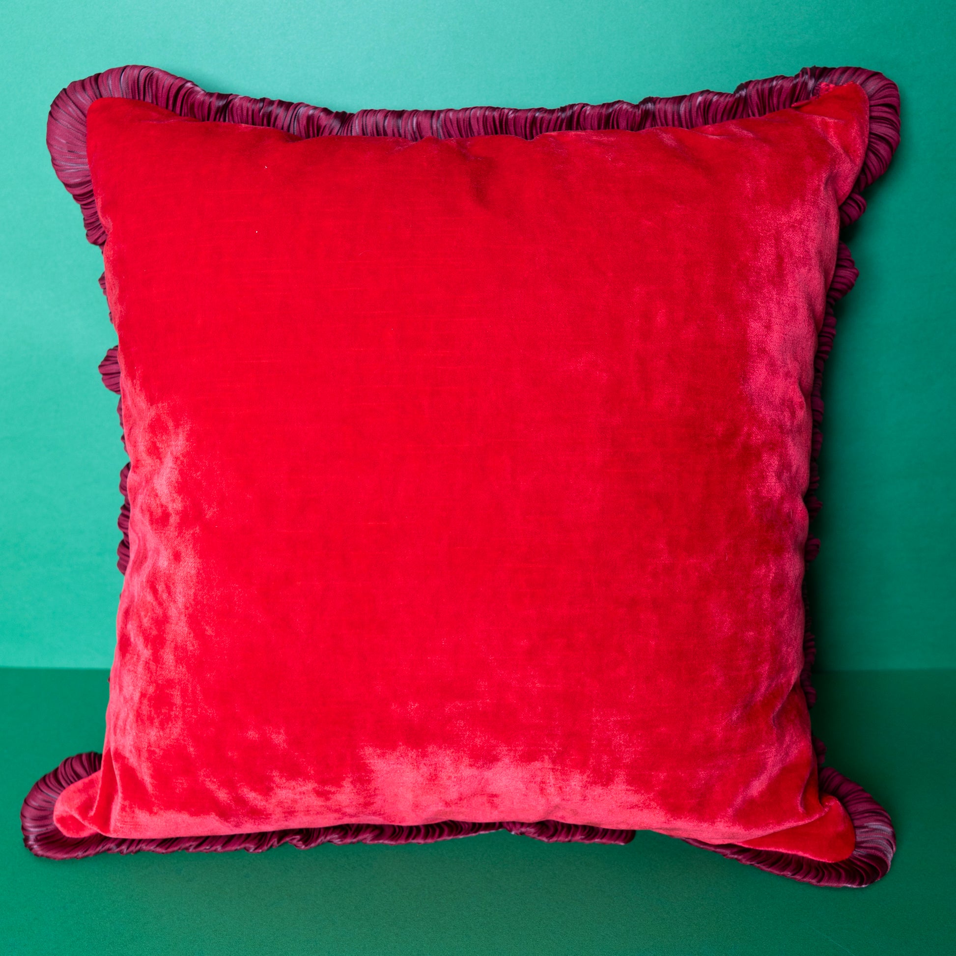 This luxurious cushion is a one-of-a-kind creation, meticulously handmade in a small workshop in Barcelona.