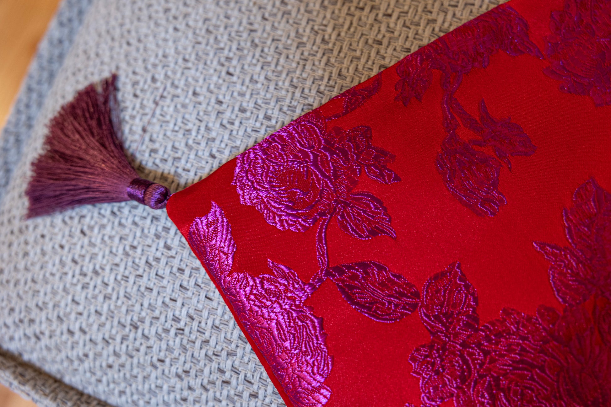 Satin Cushion Red Velvet - Tassels
