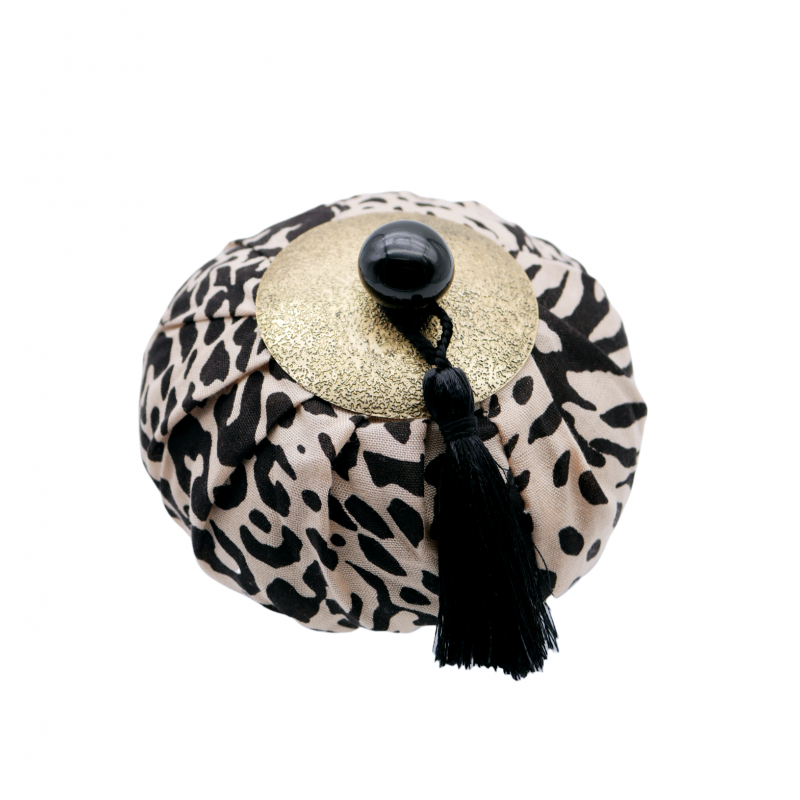 This cotton purse, decorated with a hammered brass ornament will preciously decorate and perfume your home.